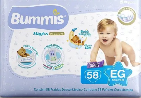 A linha de fralda infantil Bummis Magics Premium é indicada para a fase do bebê com peso entre 13kg e 15kg.